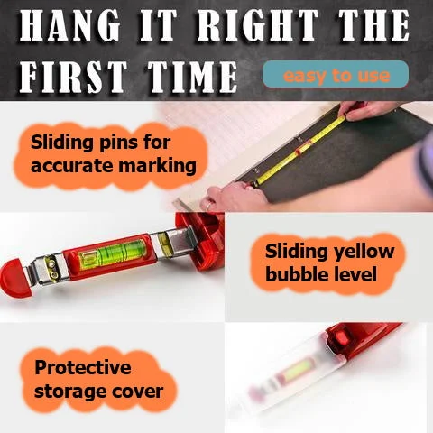 All-in-one function - It is difficult to directly hang up pictures, mirrors, shelves, TVs and other items at once. To simplify the process, the tool can measure, level and mark walls at the same time.